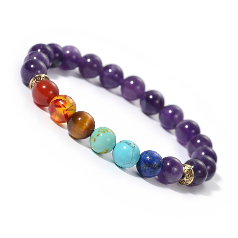 When life gets tough, it's time to take a break. This Amethyst chakra bracelet is here to help, providing you with a daily reminder of self-confidence. 7 chakra stones are strategically embedded in the bracelet to balance and support your spiritual needs. There's no better way to get back on your feet.