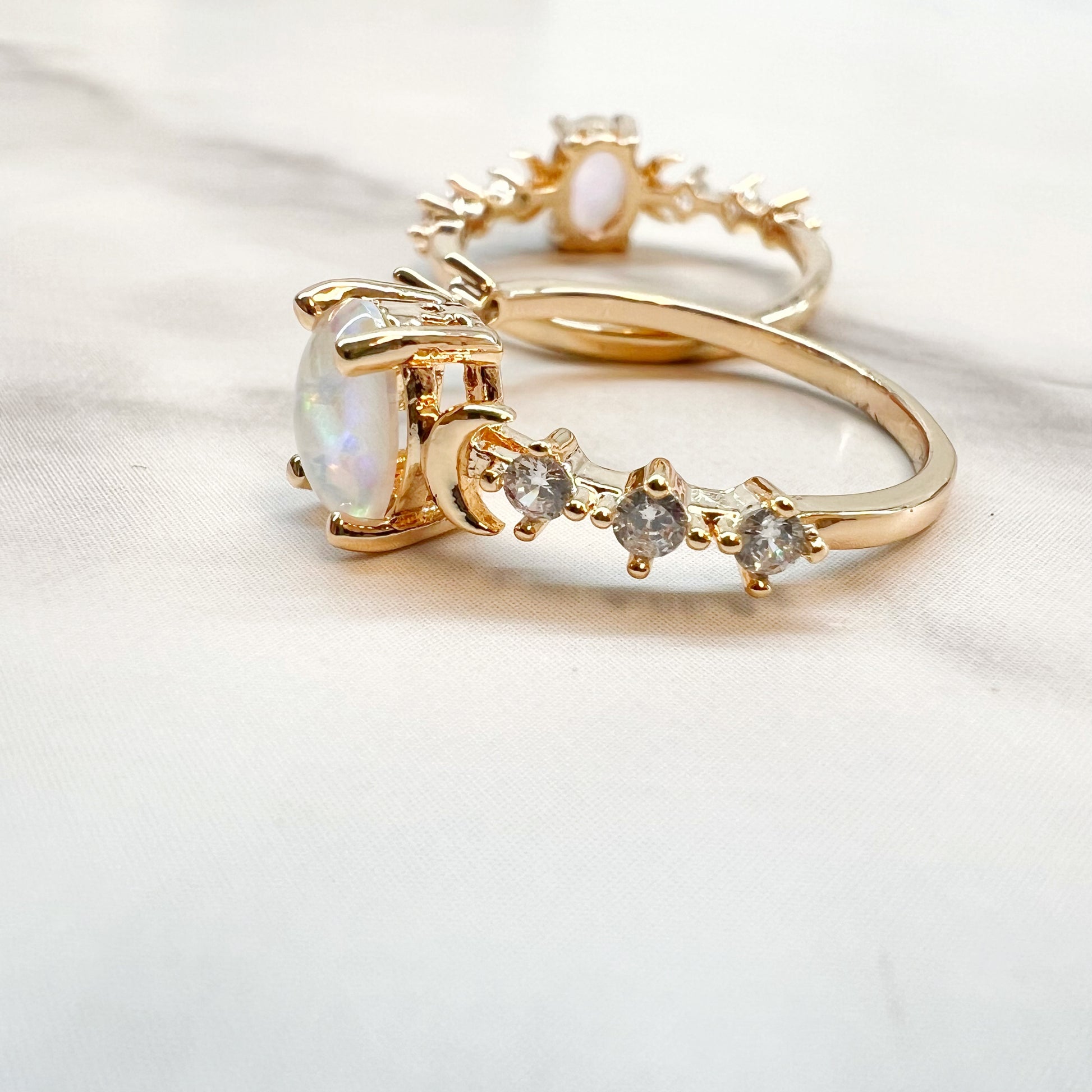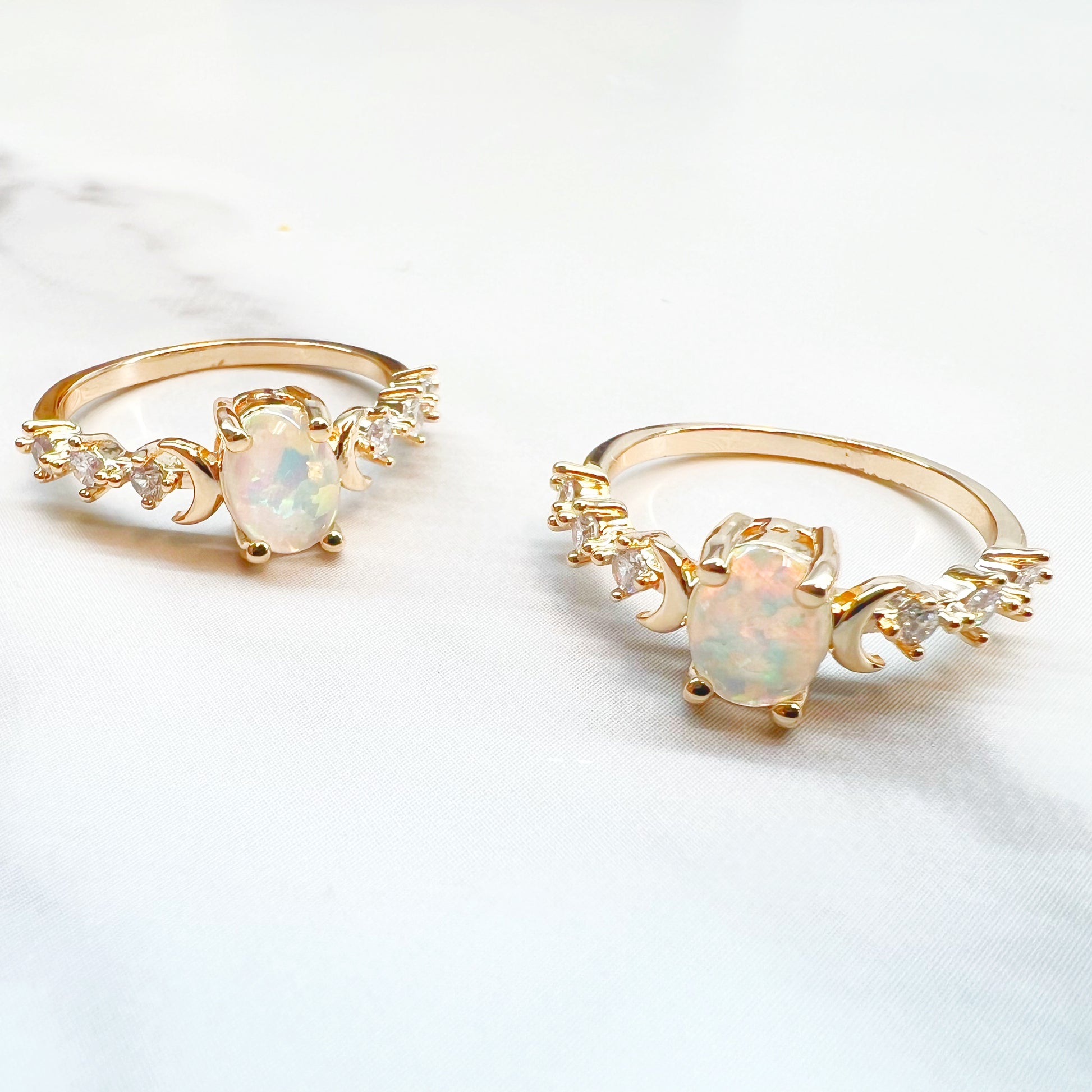 Our stunning moon ring, a true embodiment of celestial beauty and sophistication. This exquisite piece features a captivating oval-cut charm that sparkles with celestial brilliance. Inspired by the celestial wonders, the ring's design incorporates intricate details that mimic the beauty of the cosmos. Each element is thoughtfully crafted to evoke a sense of wonder and awe. The oval cut of the semi precious stone symbolizes eternity and enduring love, making this ring an ideal choice for expressing deep and lasting emotions. It's a perfect gift for special occasions, such as engagements, anniversaries, or as a symbol of self-love.