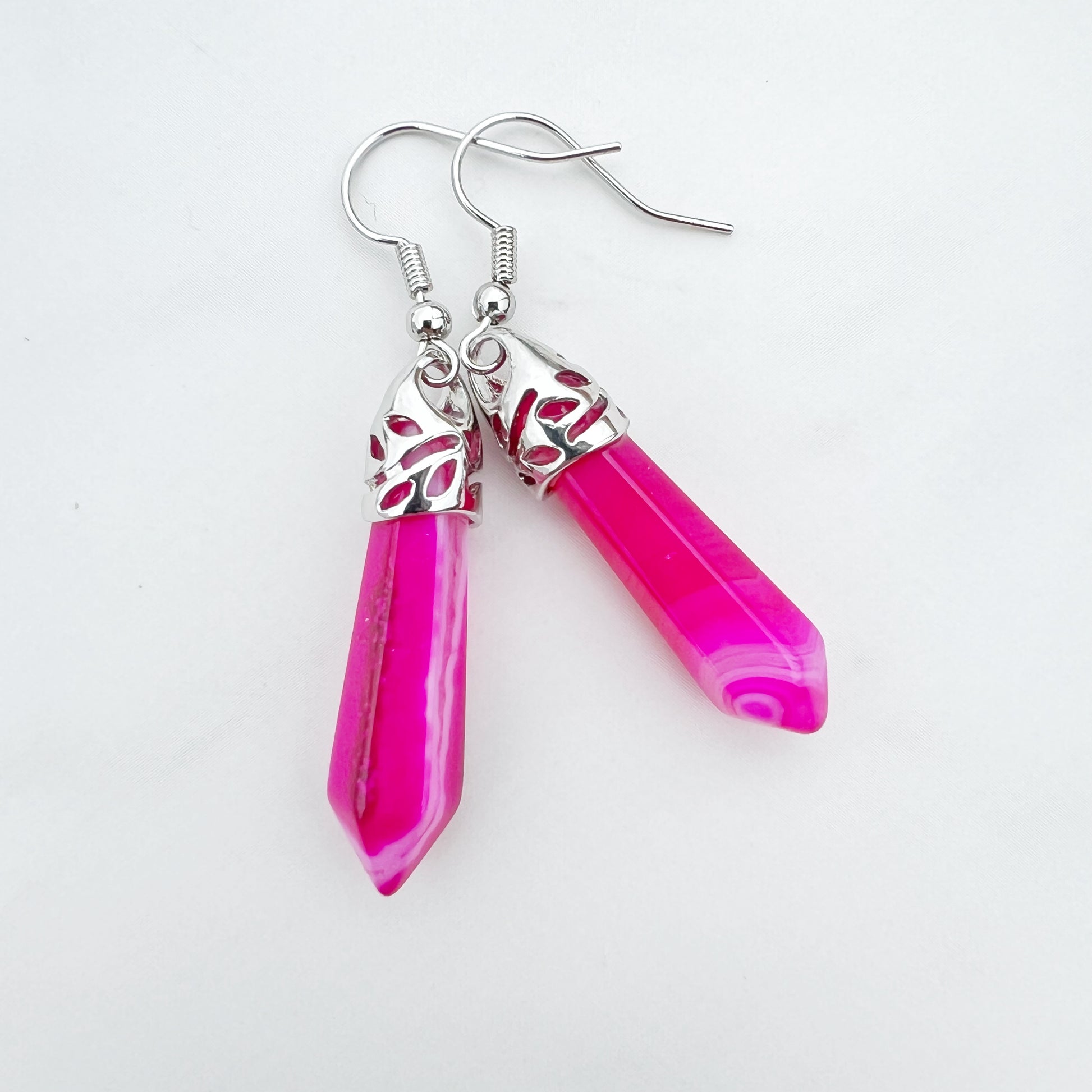 Healing Gemstone Hexagon Point Earring - 16 Colors